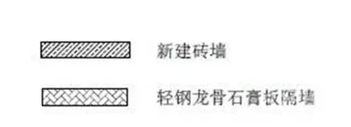 新砌的墻體示意圖,注意磚墻和輕鋼龍骨隔墻的標示要有區(qū)分。