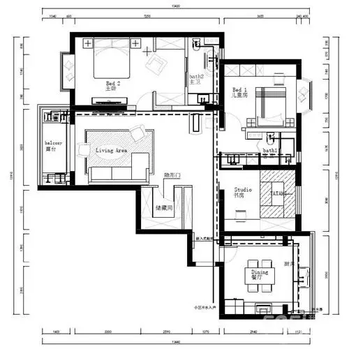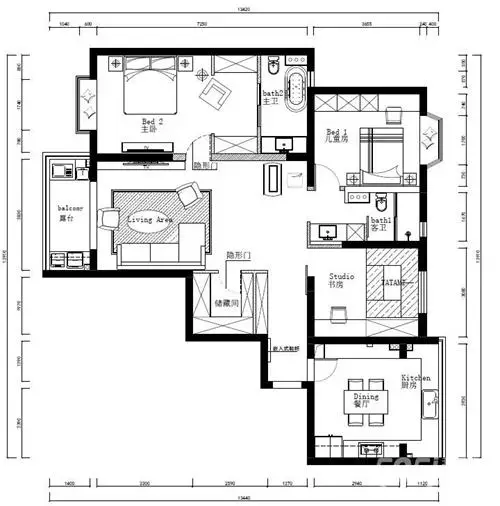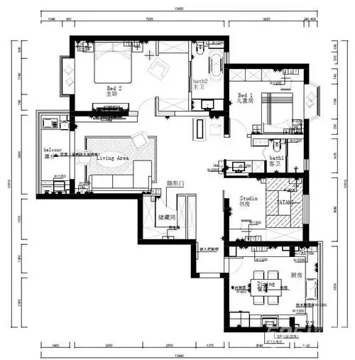 預期裝修完成后的布置效果,注意家具的尺寸和各動線通道寬度足夠。