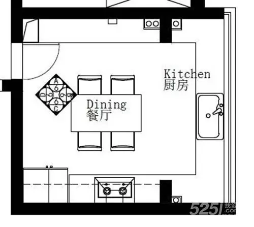 在平面圖上標注出后面立面圖視角位置。如下圖中A就代表著廚房這個區(qū)域從A處看過去的立面。