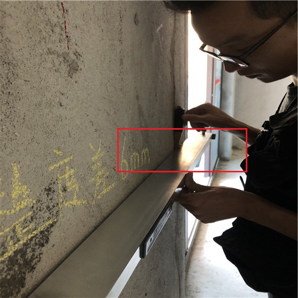 -客廳陽臺推拉門中間墻面水平平整度偏差約6mm-