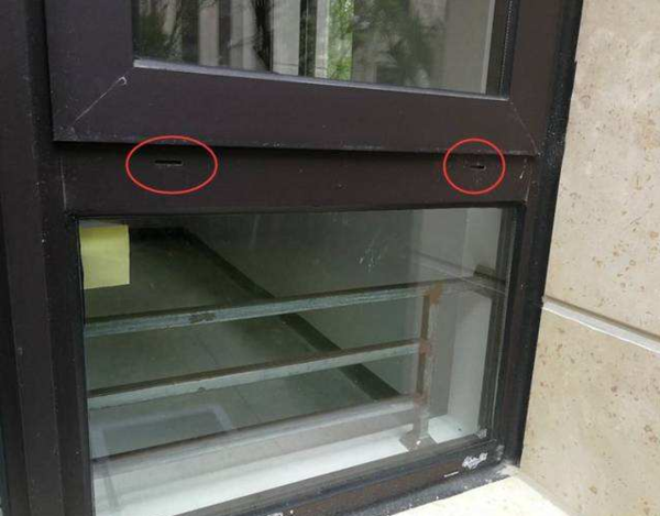 泄水口大都是門窗安裝完成后人工增加的,這個問題在驗房過程中經(jīng)常發(fā)現(xiàn)沒有設置。如不及時發(fā)現(xiàn)并整改,一到雨天,雨水滲進門窗底框,無法及時排出,形成積水腐蝕門窗框,縮短門窗使用壽命。